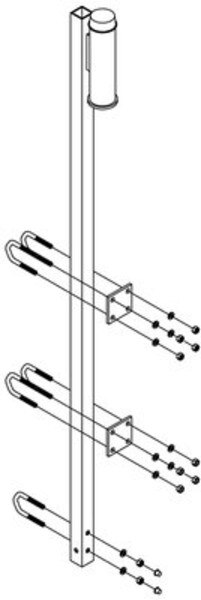 Top bracket for fixed ladder with energy absorber for system up to 499 ft (152.1 m), galvanized, attaches to three rungs up to 1 1/8 in (2.85 cm) diameter.